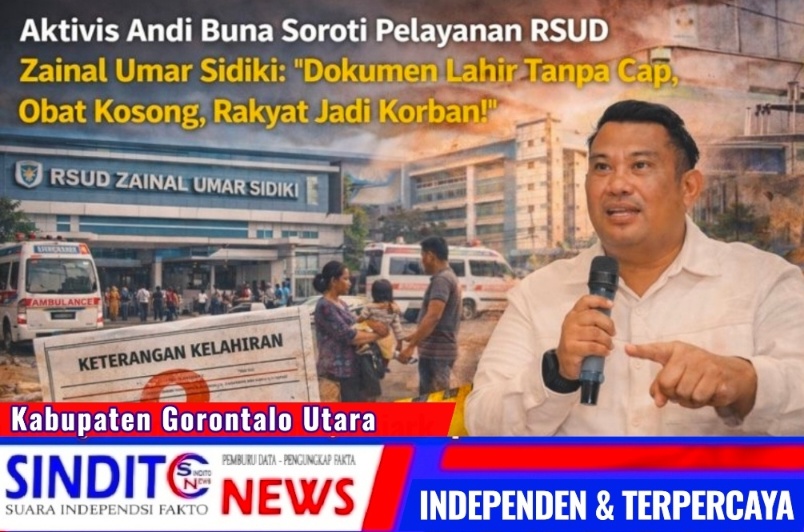 SINDITOnews.com | GORONTALO UTARA – Aktivis senior sekaligus penggiat hak publik, Andi S. Buna, angkat suara keras terhadap buruknya pelayanan di Rumah Sakit Umum Daerah (RSUD) Zainal Umar Sidiki (ZUS), Kabupaten Gorontalo Utara. Ia menilai, manajemen rumah sakit milik daerah ini telah gagal menjalankan amanah pelayanan dasar kepada masyarakat.