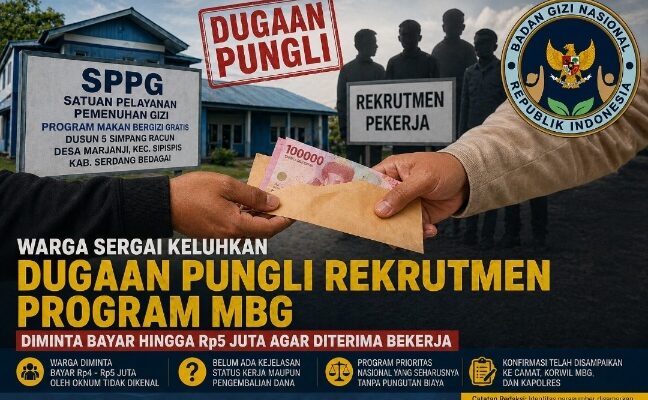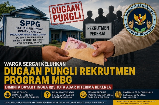 Serdang Bedagai, 27 April 2026 — Warga Desa Marjanji, Kecamatan Sipispis, Kabupaten Serdang Bedagai, Sumatera Utara, mengeluhkan dugaan praktik pungutan liar dalam proses rekrutmen pekerja di Satuan Pelayanan Pemenuhan Gizi (SPPG) Program Makan Bergizi Gratis (MBG) di Dusun 5 Simpang Racun.