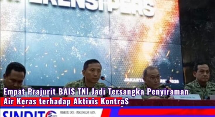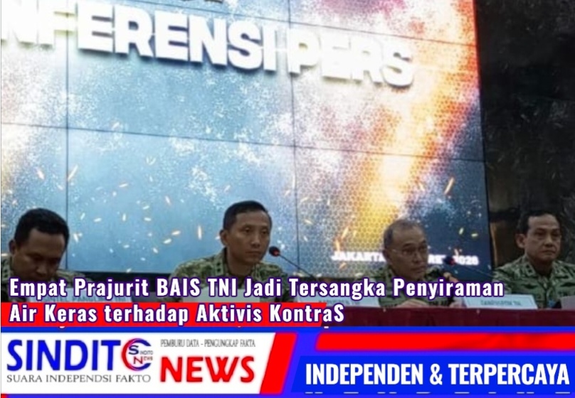 SINDITOnews.com | Jakarta, – Pusat Polisi Militer (Puspom) TNI resmi menetapkan empat prajurit sebagai tersangka dalam kasus penyiraman air keras terhadap Andrie Yunus, Wakil Koordinator Komisi untuk Orang Hilang dan Korban Tindak Kekerasan (KontraS).