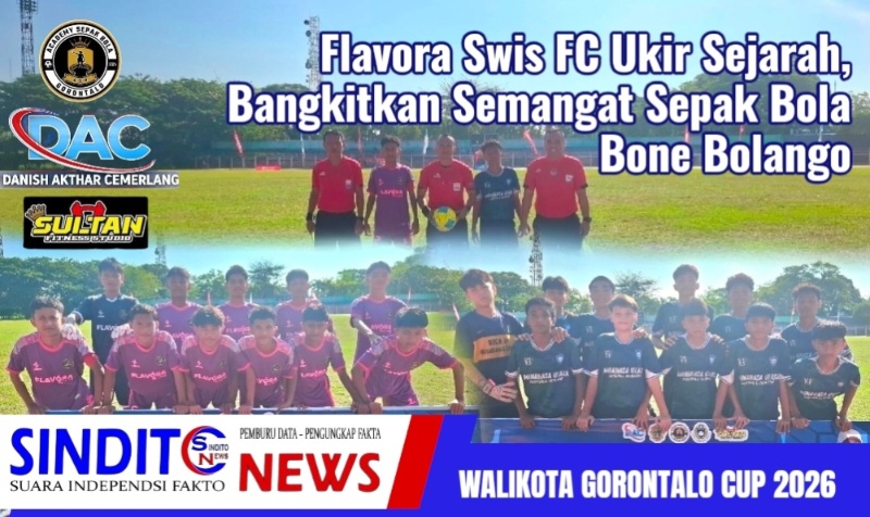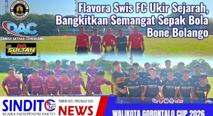 SINDITOnews.com | GORONTALO — Asa sepak bola usia dini Bone Bolango kembali menyala. Flavora Swis FC asal Suwawa tampil sebagai juara grup U-16 pada ajang Festival Sepak Bola Usia Dini Wali Kota Gorontalo Cup 2026, sekaligus memastikan tiket ke babak gugur. Senin, 26/1/2026.