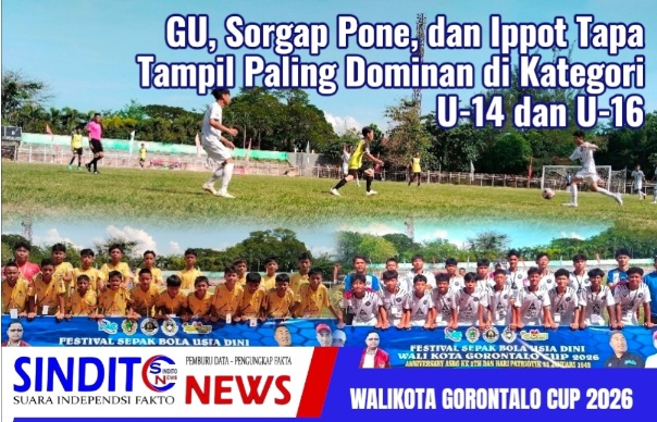 SINDITOnews.com | GORONTALO — Sejumlah tim menunjukkan dominasi kuat pada pertandingan hari ketiga Festival Sepak Bola Usia Dini Wali Kota Gorontalo Cup 2026, khususnya di kategori U-14 dan U-16. Performa meyakinkan dengan kemenangan besar menempatkan beberapa tim sebagai kandidat kuat di fase lanjutan.