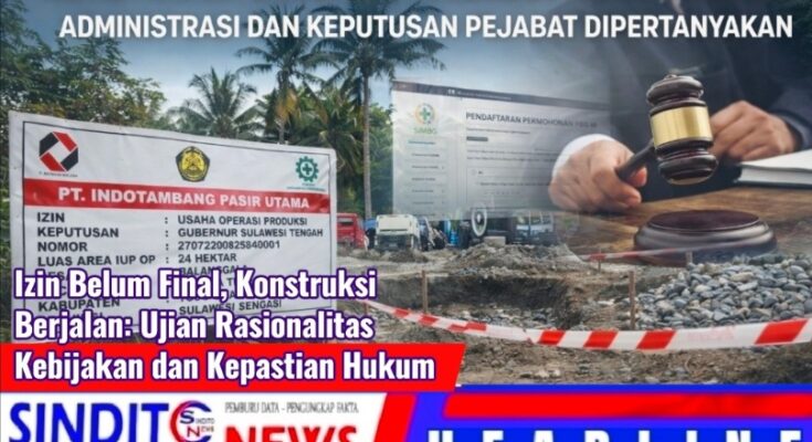SINDITOnews.com | TOJO UNA-UNA — Polemik aktivitas konstruksi PT. Indotambang Pasir Utama (IPU) di tengah belum terbitnya Persetujuan Bangunan Gedung (PBG) dan belum finalnya penempatan jaminan reklamasi mengerucut pada satu pertanyaan mendasar: apakah tata kelola perizinan berjalan sesuai prinsip kepastian hukum?