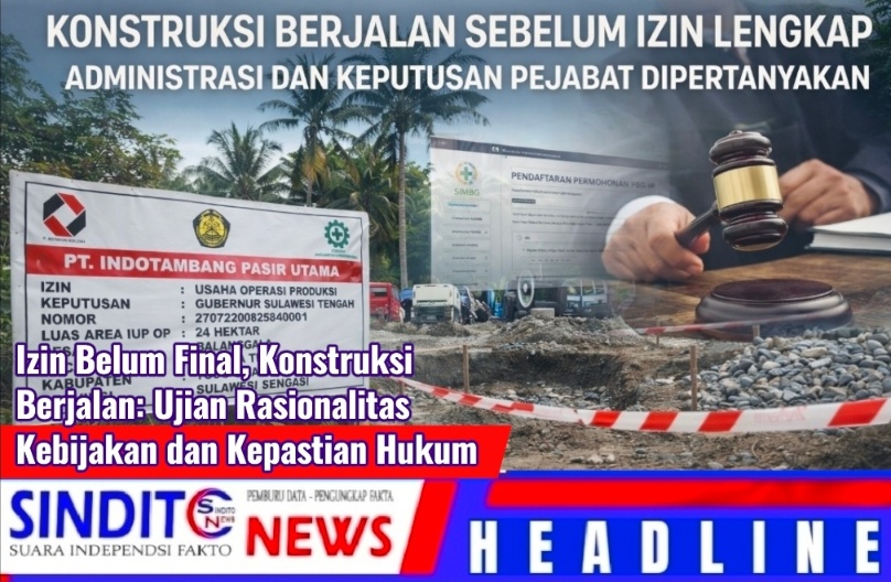SINDITOnews.com | TOJO UNA-UNA — Polemik aktivitas konstruksi PT. Indotambang Pasir Utama (IPU) di tengah belum terbitnya Persetujuan Bangunan Gedung (PBG) dan belum finalnya penempatan jaminan reklamasi mengerucut pada satu pertanyaan mendasar: apakah tata kelola perizinan berjalan sesuai prinsip kepastian hukum?