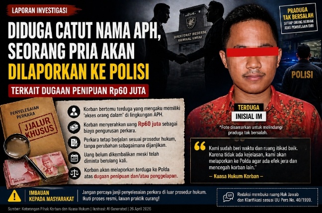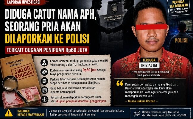 Informasi yang dihimpun dari pihak korban menyebutkan, IM meyakinkan memiliki akses ke lingkungan aparat penegak hukum (APH) dan mampu mempercepat penyelesaian perkara. Dalam situasi tertekan, korban kemudian menyerahkan uang sebesar Rp60 juta sebagai biaya pengurusan.
