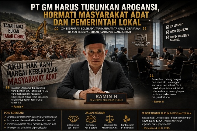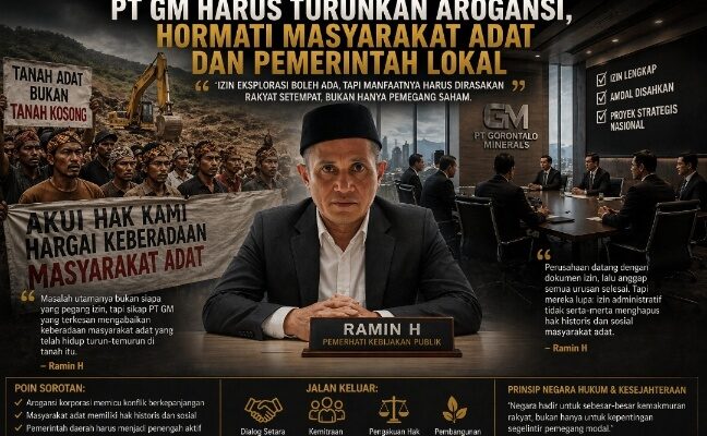 Gorontalo, – Tegangnya hubungan antara perusahaan tambang PT GM dan masyarakat adat di sekitar wilayah operasinya di Gorontalo kembali menjadi sorotan. Ramin H, Pemerhati kebijakan publik menilai, akar konflik bukan pada izin atau hukum semata, melainkan pada arogansi korporasi yang enggan duduk setara dengan masyarakat lokal dan pemerintah daerah.
