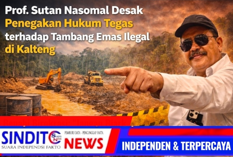 SINDITOnews.com | Palangka Raya,– Maraknya aktivitas Penambangan Emas Tanpa Izin (PETI) di Kalimantan Tengah mendapat sorotan tajam dari Prof. Dr. Sutan Nasomal, S.H., M.H., Pakar Hukum Pidana Internasional sekaligus Presiden Partai Koalisi Rakyat Indonesia.