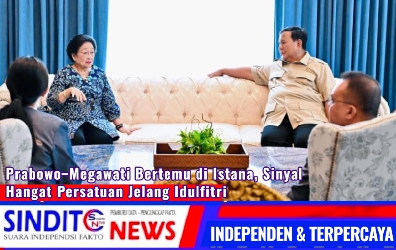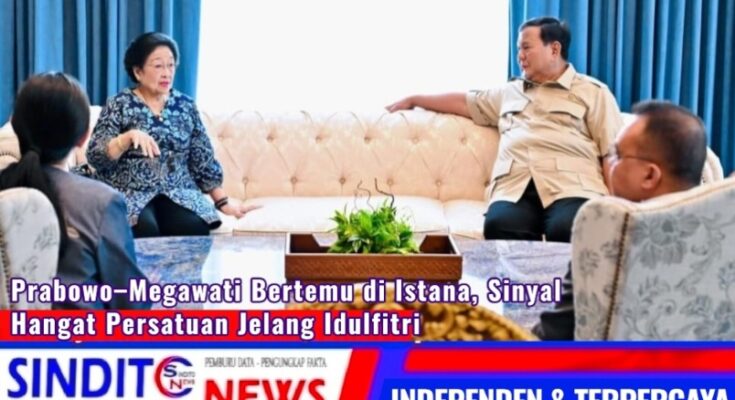 SINDITOnews.com | Jakarta,- Suasana hangat mewarnai pertemuan antara Presiden Prabowo Subianto dan Presiden ke-5 RI Megawati Soekarnoputri di Istana Merdeka, Kamis (19/3/2026). Pertemuan ini berlangsung menjelang Hari Raya Idulfitri 1447 Hijriah.