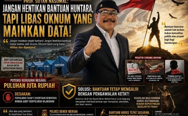 “Bantuan bencana adalah hak korban, bukan komoditas politik atau proyek bagi-bagi keuntungan. Jika ada yang bermain, itu kejahatan luar biasa terhadap kemanusiaan,” tambahnya.
