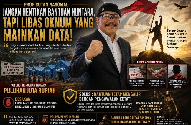 Namun, Prof. Dr. Sutan Nasomal, S.H., M.H., Pakar Hukum Pidana Internasional, menolak usulan penundaan. Ia menegaskan: bantuan harus tetap mengalir, tetapi dengan pengawalan ketat.
