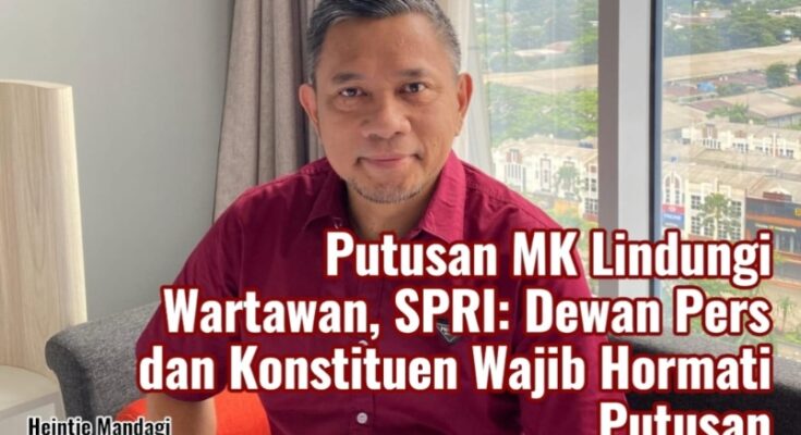 SINDITOnews.com| Jakarta – Ketua Umum Serikat Pers Republik Indonesia (SPRI), Heintje Mandagi, menegaskan putusan Mahkamah Konstitusi (MK) yang menyatakan wartawan tidak dapat langsung dituntut pidana atas kerja jurnalistiknya merupakan keputusan final dan mengikat yang wajib dihormati oleh seluruh pihak, termasuk Dewan Pers dan para konstituennya.