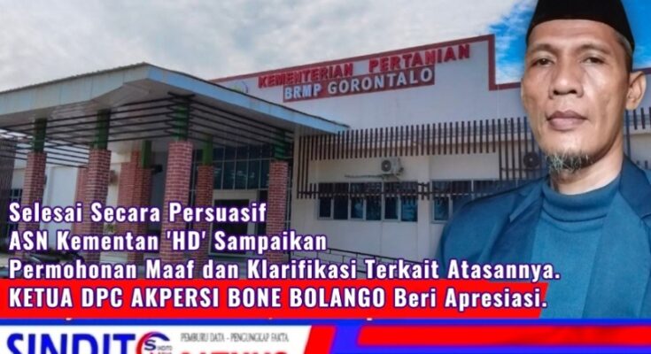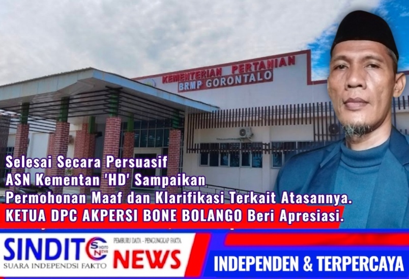 SINDITOnews.com | BONE BOLANGO – Perselisihan administrasi yang sempat mencuat antara seorang ASN berinisial HD dengan atasannya di lingkungan instansi pertanian Gorontalo kini berakhir dengan perdamaian. Melalui pendekatan persuasif, HD mengklarifikasi bahwa persoalan tersebut murni merupakan kesalahpahaman.