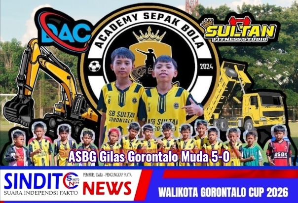 SINDITOnews.com | STADION MERDEKA, GORONTALO,– Panggung kompetisi kelompok umur kembali melahirkan cerita tentang dominasi mutlak. Akademi Sepak Bola Gorontalo (ASBG) U-11 secara resmi mendeklarasikan diri sebagai kandidat kuat juara setelah memberikan pelajaran sepak bola kepada Gorontalo Muda. Skor telak 5-0 menjadi saksi betapa tingginya standar permainan yang ditunjukkan skuat asuhan manajemen ASBG tersebut.